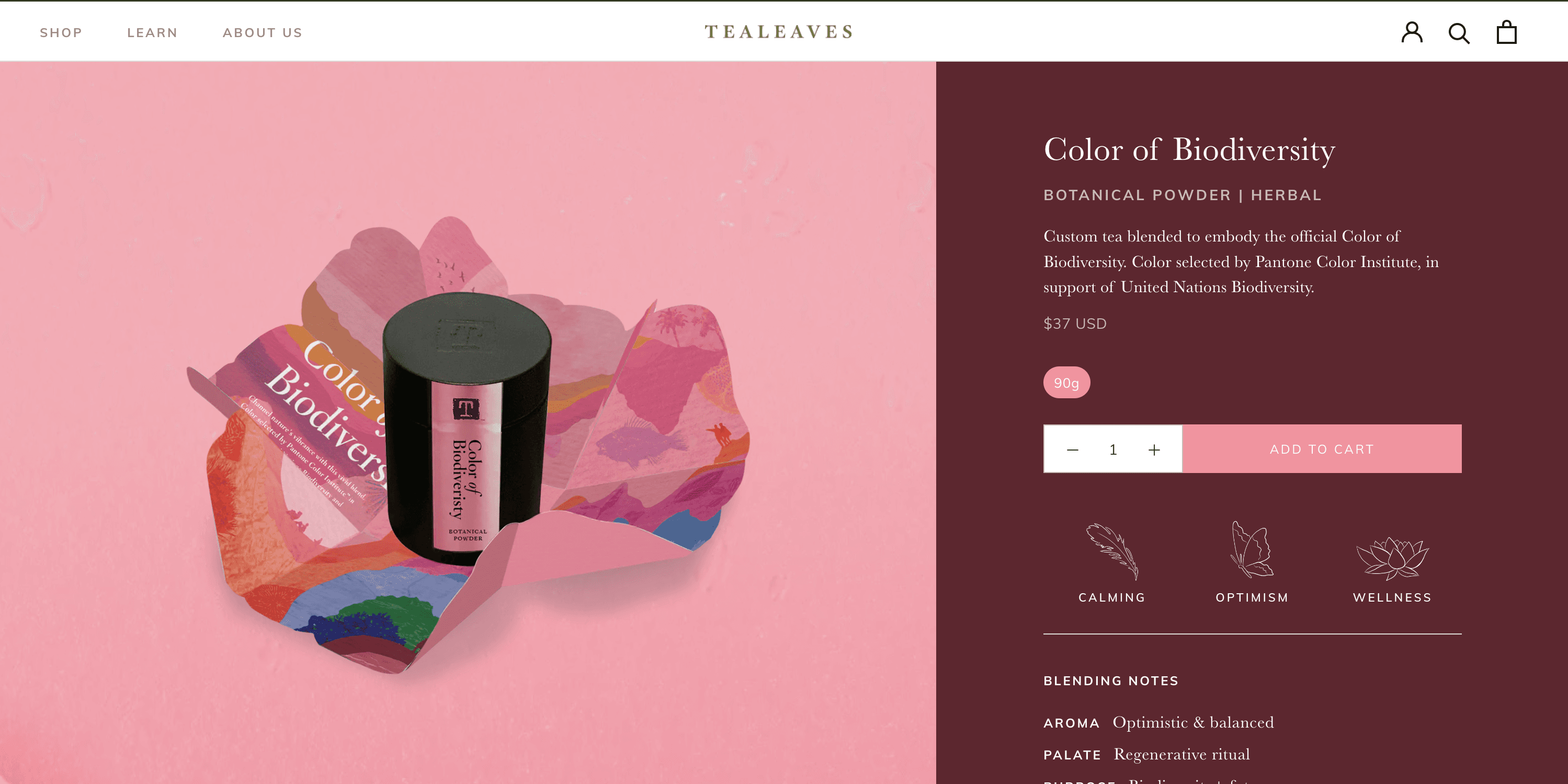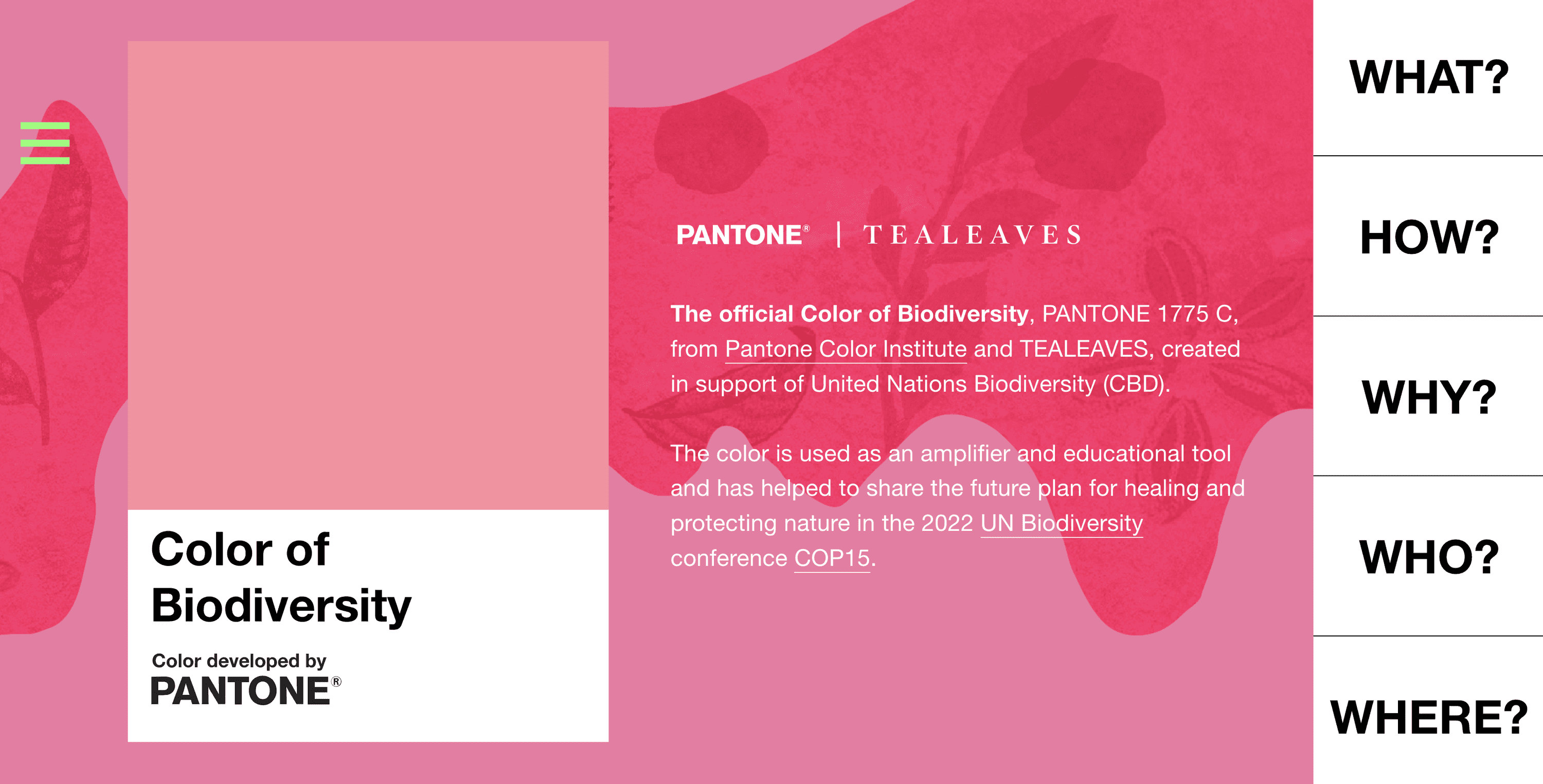 Pantone Color Institute partnered with luxury tea blender TEALEAVES and collaborated with several other organizations and NGOs to use color as a tool to raise awareness, call attention to and educate people on biodiversity loss. (read more)